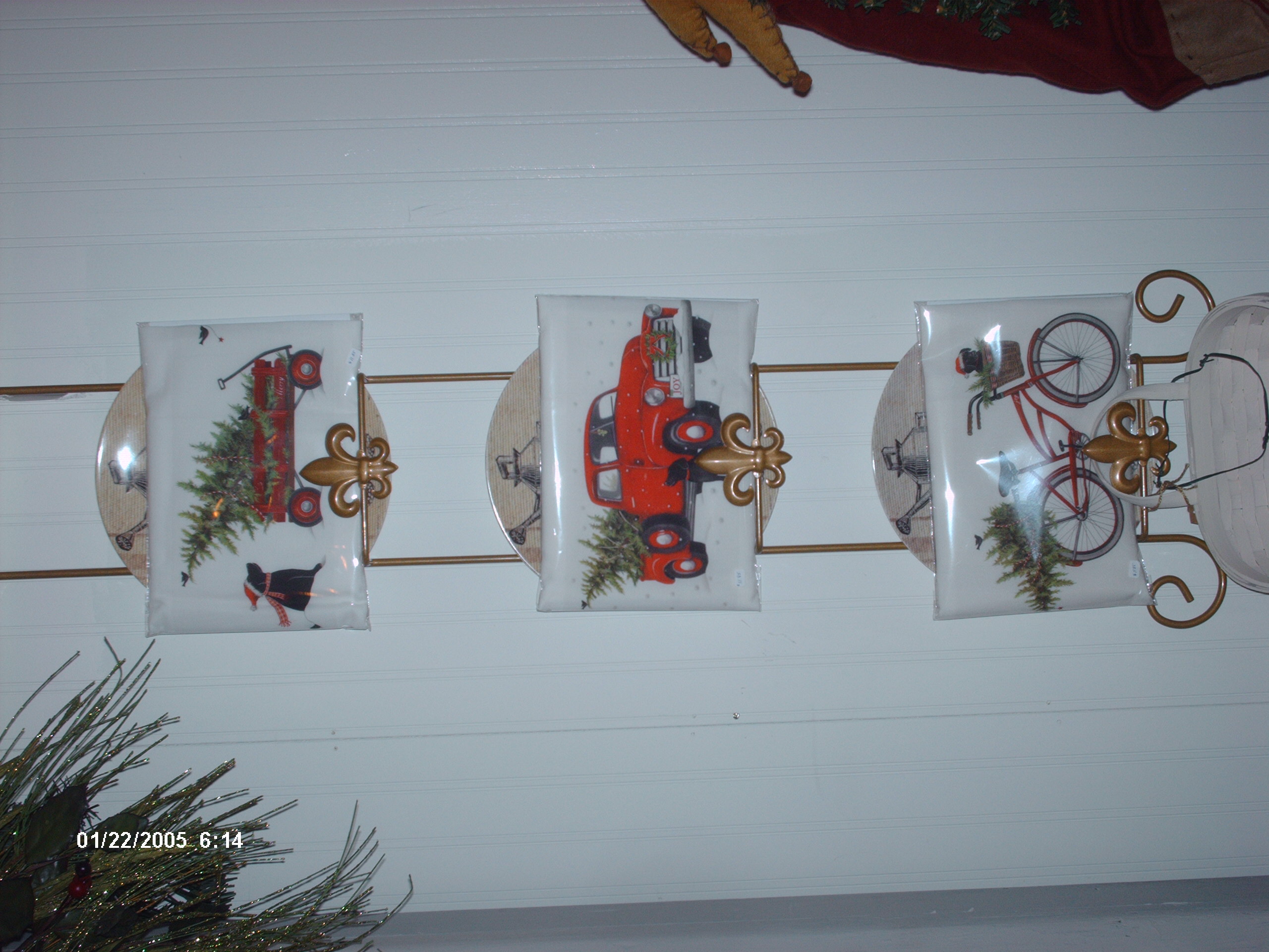 Michel lotions ,soaps ,matches ,journals , candles and vase. In decorated containers . also Drawer liners and Bridges cards and tally’s